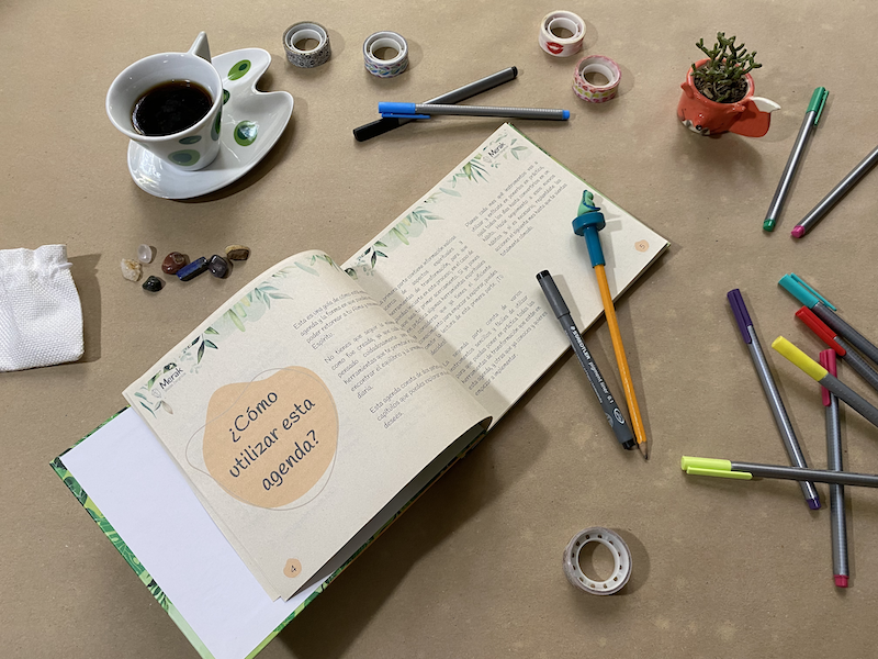 • Espacios para escribir tus proyectos, registrar tus hábitos, agradecer, colorear mandalas y programar cada mes desde tu energía interior.