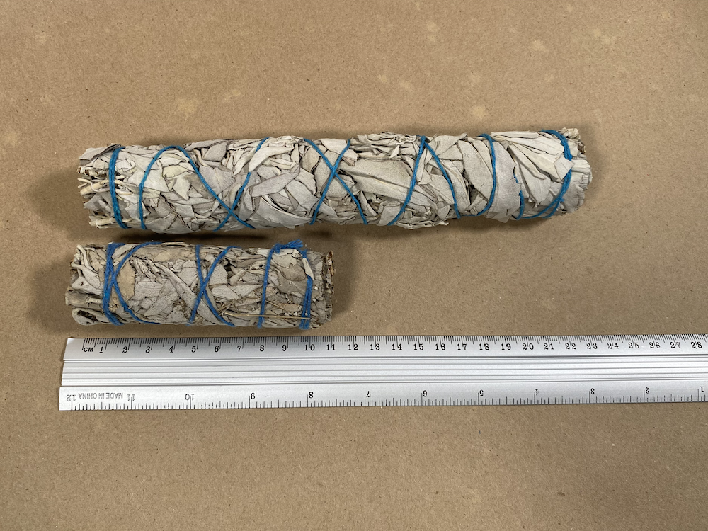 Un manojo de Salvia Blanca, mide aproximadamente 3,5 cm de ancho, y está disponible en dos tamaños, elige el que mejor se adapte a tus necesidades ¡Transforma tu entorno y tu vida con esta maravillosa planta!